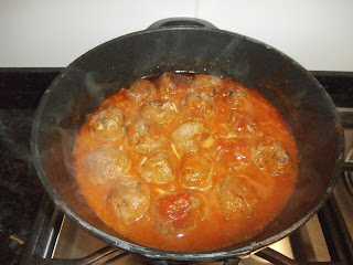 Faça um refogado com cebola, azeite e alho e coloque as almôndegas no tachinho, deixe "fritar" um pouco, depois coloque um pouco de vinho a gosto e polpa de tomate ou tomate pelado, sal e pimenta.